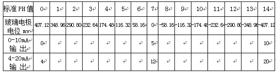 一般采用標準緩沖溶液來檢驗。辦法是:先用PH6.86的標準溶液校準中性點(PH7附近),變送器輸出應為12mA(4-20mA)或5mA(0-10mA時),誤差通過調整定位電位器消除。(調電路上的“O“電位器,順時針增大,逆時針減少)。再用PH4.01標準溶液檢驗酸性點,變送器輸出為4.01×1.142+4=8.58mA(4-20mA時)誤差通過調整斜率電位器來消除。(調電路上的”S”電位器,)最后將變送器探頭放在PH9.18的標準溶液中,變送器輸出應為9.18×1.142+4=14.48mA(4-20mA時),其示值與標準之間的差就是儀表誤差。