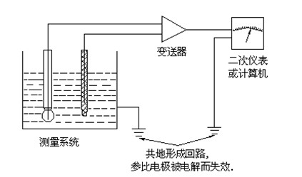 2、二線制變送器,接入計算機,調節記錄儀,打印機等二次儀表時,必須配隔離型配電器或配本公司生產的帶隔離輸出的XMT或XMZ-1000系列顯示儀表,所需4-20mA信號從其輸出端子取得,以隔斷測量系統與輸出到二次儀表的共地干擾。(PH變送器,電極系統與大地連通,要正常工作,外部連線必須懸空與地,并且絕緣良好,而計算機或調節記錄儀表,大都是電源接地,直接與變送器連接后,使變送器的回路接地而形成測量回路的兩點接地,結果造成參比電極被電解而失效。)
