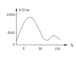 圖五硫酸濃度與電導(dǎo)率關(guān)系曲線圖